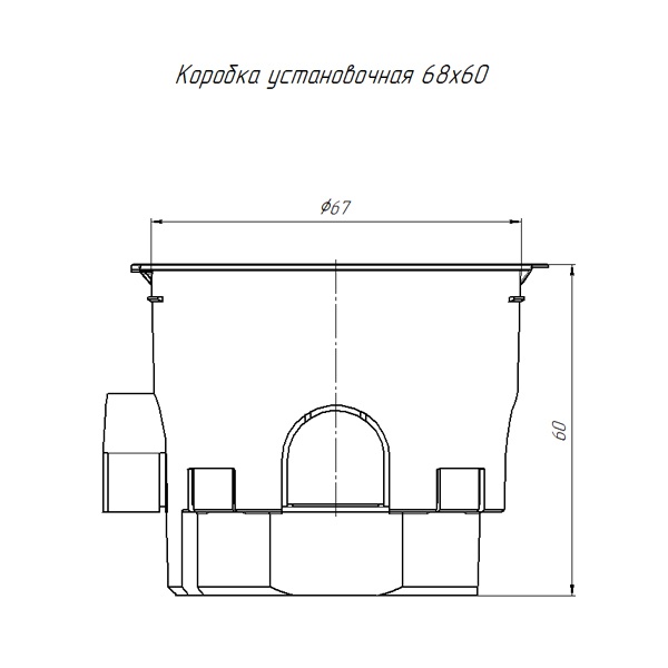 Монтажная коробка (подрозетник или установочная коробка) диаметром 68 мм и глубиной 60 мм для установки в бетон, с саморезами и крышкой 80-0550СКм