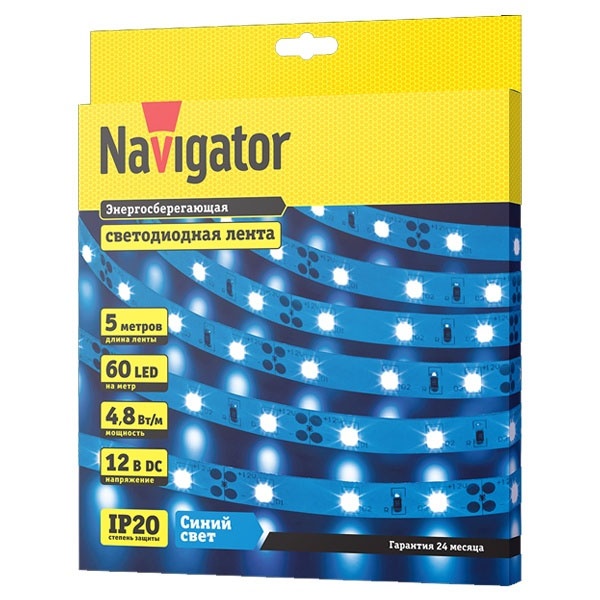 • Светодиодная лента Navigator 80 295 NLS-3528B60-4.8-IP20-12V R5 4,8W синий (бухта 5m)