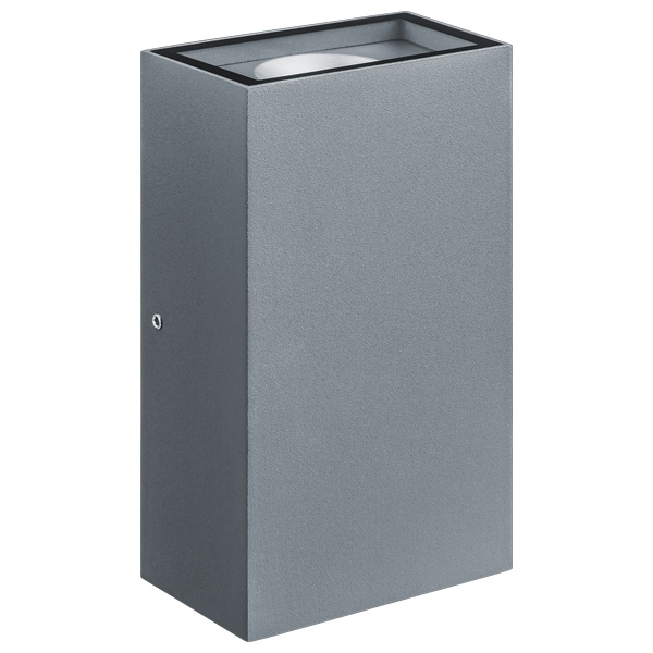 Фасадный светодионый светильник в форме прямоугольника серого цвета со световым потоком в двух направлениях, мощностью 6 Ватт теплого белого света. 80617