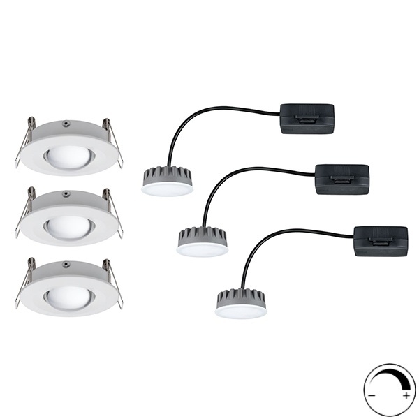 Комплект из трех встраиваемых потолочных диммируеммых светильников, мощностью 3x6,8 Ватт, теплый свет, белый матовый цвет 92931