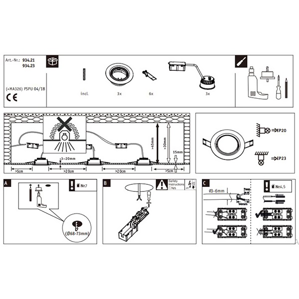 • Кол-во цоколей и их сумм. мощность 3xLED 5W