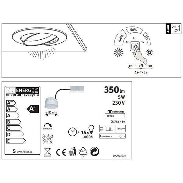 • 3-ступенчатое регулирование яркости с помощью стандартного переключателя света.