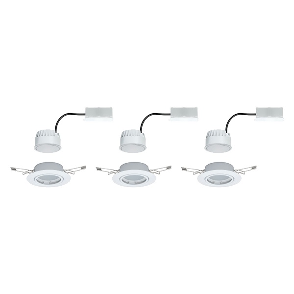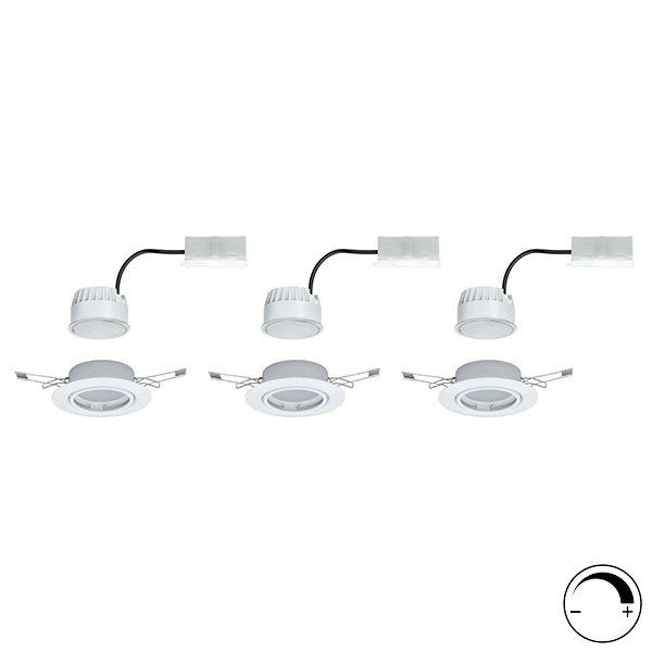 Набор из трех потолочных, точечных, поворотных, диммируемых светильников акцентного освещения, встраиваемого монтажа, со светодиодным модулем мощностью 5 Ватт, теплый белый свет 93427