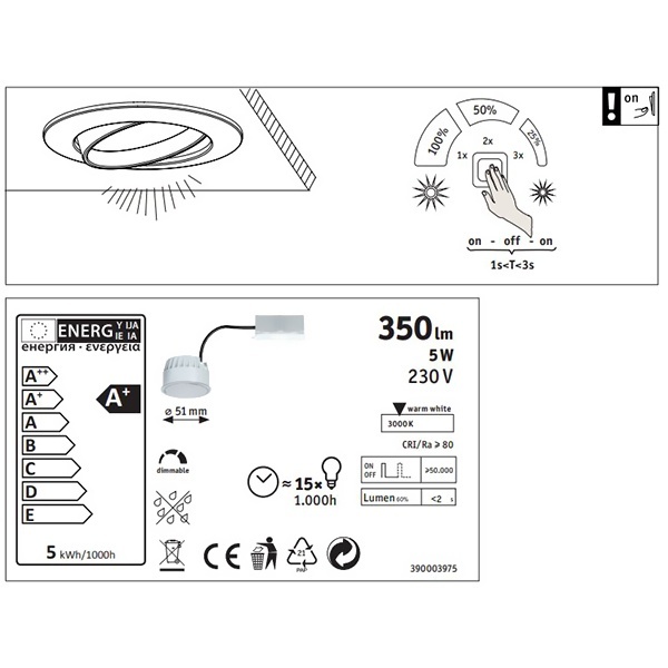 - 3-ступенчатое регулирование яркости с помощью стандартного переключателя света.
