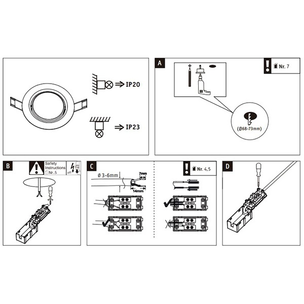 - Монтажное отверстие: 68-73 мм
