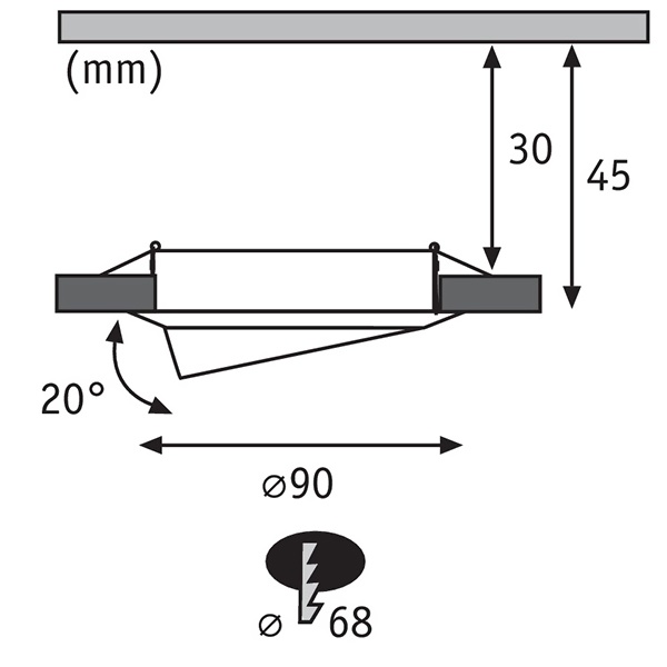 - Монтажное отверстие 68мм.