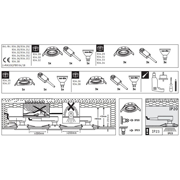 93433 Светильник встраиваемый Paulmann комплект Nova LED 3x6,5 GU10 Матовый алюминий