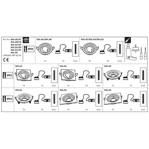 • Кол-во цоколей и их сумм. мощность 3xLED 6,5W