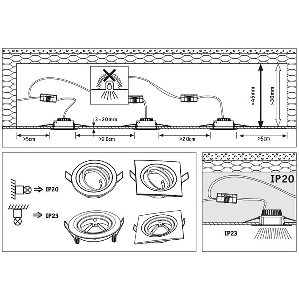 • Высота встраиваемой части: 45 мм