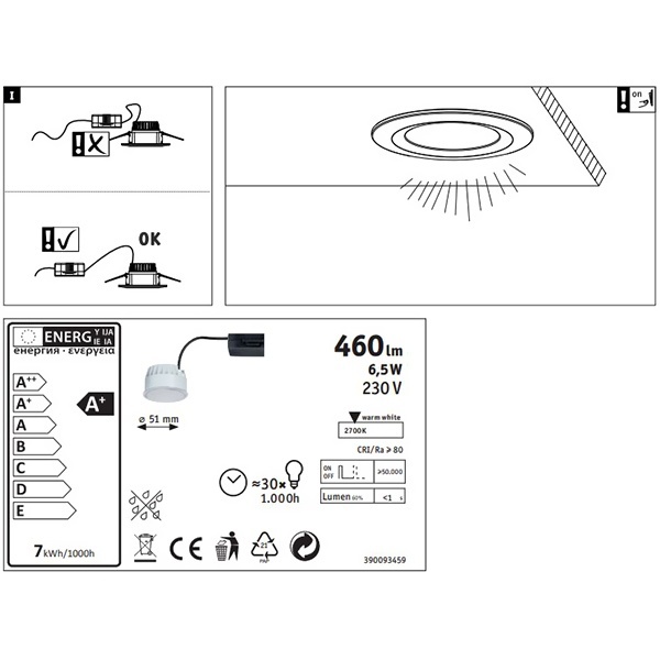 • Кол-во цоколей и их сумм. мощность 1xLED 6,5W