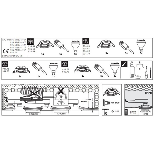 • Светильник встраиваемый Paulmann Nova 3 step DIM 1x6,5W Матовый белый (100%/50%/25%/off)
