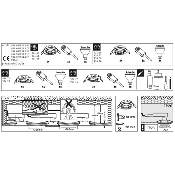 • Светильник встраиваемый Paulmann комплект Nova 3 step DIM 3x6,5W Матовый алюминий (100%/50%/25%/off)