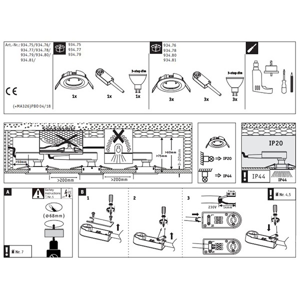 • Светильник встраиваемый Paulmann Nova IP44 3 step DIM 1x6,5W Матовое железо (100%/50%/25%/off)