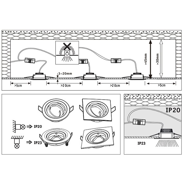 3-х ступенчатая регулировка яркости. Так как источник света вставляется сзади, стопорное кольцо не требуется. Благодаря прямому подключению на 230В, вы можете легко соединять источники света без ограничений. Благодаря несложной фиксации с помощью удерживающих пружин потолок остается неповрежденным даже после многократной установки и снятия. В комплект поставки входит светильник, эффективный и долговечный светодиодные модуль. Очень плоский - установка также возможна с малой глубиной от 30 до 35 мм.