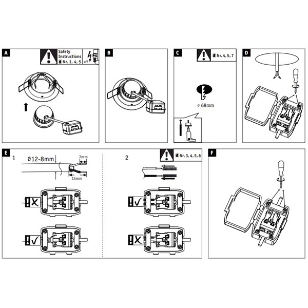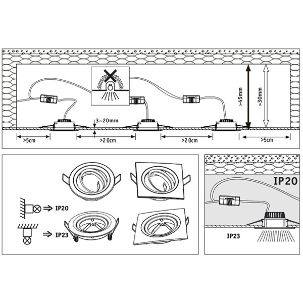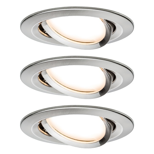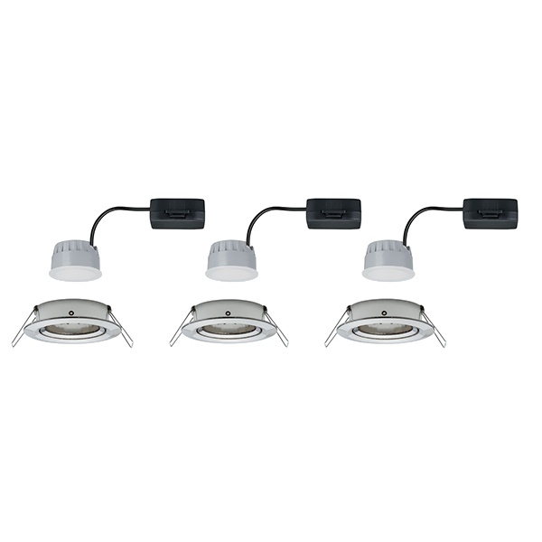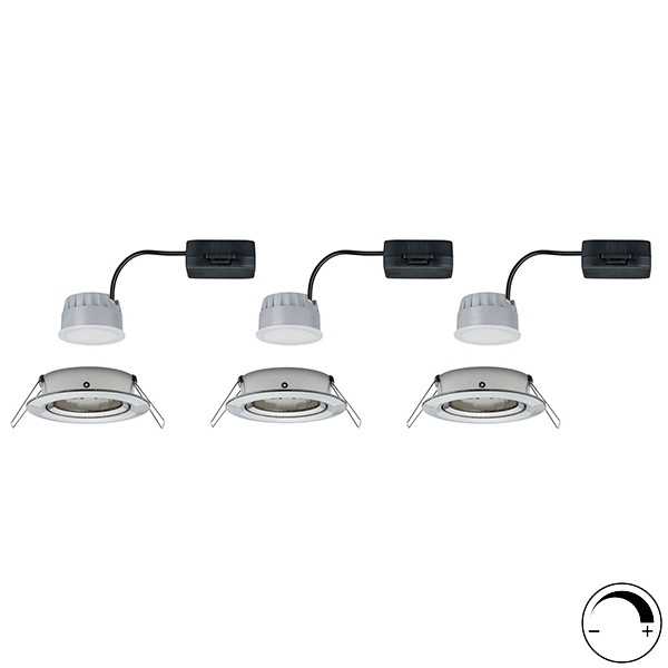 3-х ступенчатая регулировка яркости. Так как источник света вставляется сзади, стопорное кольцо не требуется. Благодаря прямому подключению на 230В, вы можете легко соединять источники света без ограничений. Благодаря несложной фиксации с помощью удерживающих пружин потолок остается неповрежденным даже после многократной установки и снятия. В комплект поставки входят три светильника, эффективные и долговечные светодиодные модули. Очень плоский - установка также возможна с малой глубиной от 30 до 35 мм.
