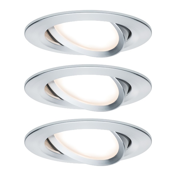 Набор из трех потолочных, точечных, поворотных, диммируемых светильников акцентного освещения, встраиваемого монтажа, со светодиодным модулем мощностью 6,5 Ватт, теплый свет, цвет матовый алюминий 93487