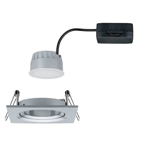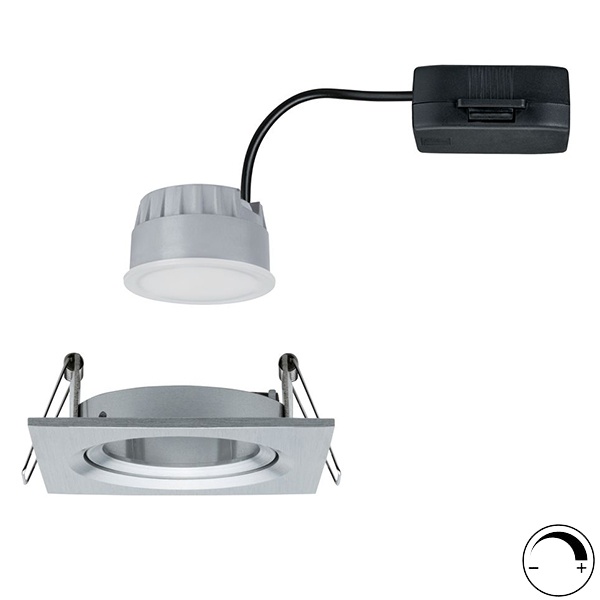 Потолочный, квадратный, точечный, поворотный, диммируемый светильник акцентного освещения, встраиваемого монтажа, со светодиодным модулем мощностью 6,5 Ватт, теплый свет, цвет матовый алюминий 93491