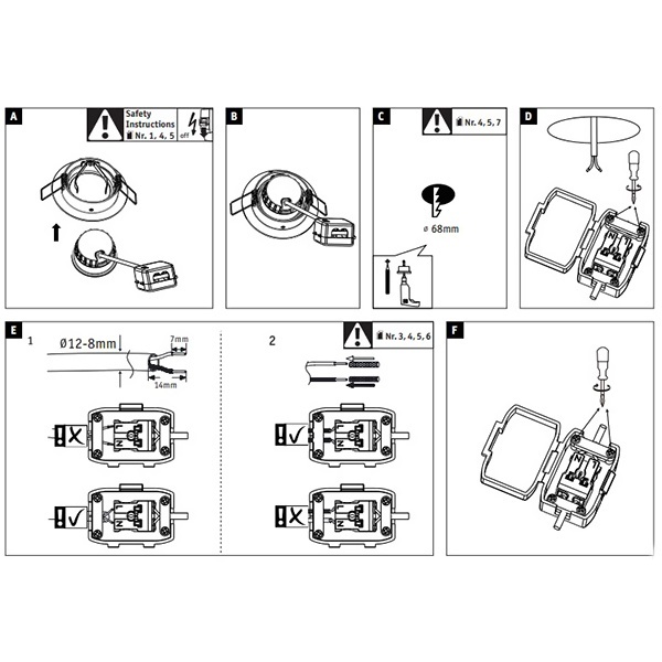 - Монтажное отверстие: 68 мм