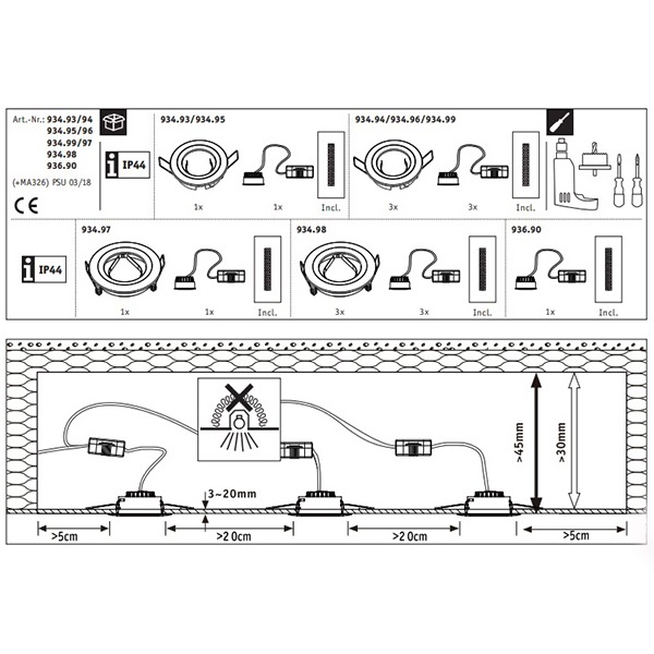 3-х ступенчатая регулировка яркости. Так как источник света вставляется сзади, стопорное кольцо не требуется. Благодаря прямому подключению на 230В, вы можете легко соединять источники света без ограничений. Благодаря несложной фиксации с помощью удерживающих пружин потолок остается неповрежденным даже после многократной установки и снятия. В комплект поставки входит светильник, эффективный и долговечный светодиодные модуль. Очень плоский - установка также возможна с малой глубиной от 30 до 35 мм.