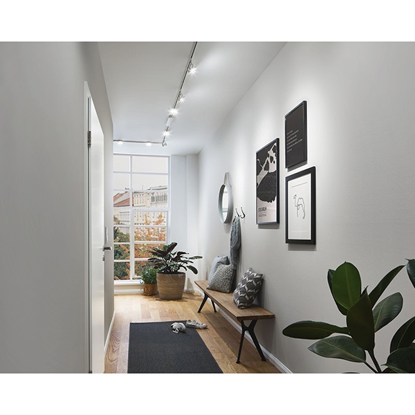 Поворотный точечный светильник для 24 Вольтовой осветительной трековой системы НаноРейл от немецкой компании Паулманн. С диммируемым светодиодом мощностью 6,5 Ватт с теплым белым светом, выполнен с возможностью регулирования направления светового потока путем поворотных механизмов. Имеет не большие размеры 132*32*80 мм, данных характеристик хватает чтобы осветить площадь в два квадратных метра с освещеностью в 550 лм. Покрашен в белом матовом цвете.