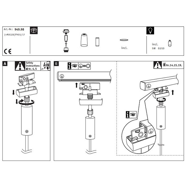 Трековый диммируемый светильник Пульман Pendel Arido II для шинной системы URail, под лампу максимальной мощностью 25 Ватт с цоколем GU10 94998