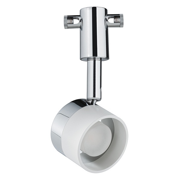 Трековый светильник со светодиодными источниками света в комплекте. Применяется для акцентного освещения в кафе, выставочных залах. Трансформатор в основании светильника с 12ти вольтовой рельсовой системой длинной 2100 мм.