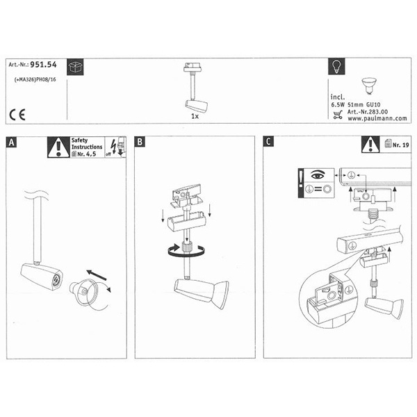 Светильник спот для шинных систем Paulmann Barelli LED, GU10, 6,5Вт, 230В, хром 95154