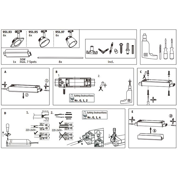 Готовая рельсовая система для общего освещения, либо для декоративной, акцентной подсветки. Трансформатор на 30 ВА, на 6 светодиодных светильников.