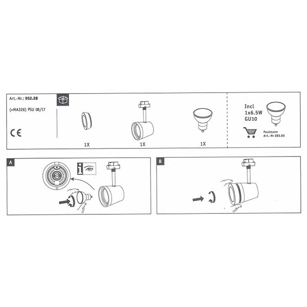 • Кол-во цоколей и их сумм. мощность GU10 max 6.5W (LED)