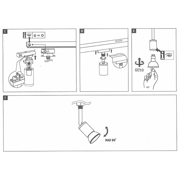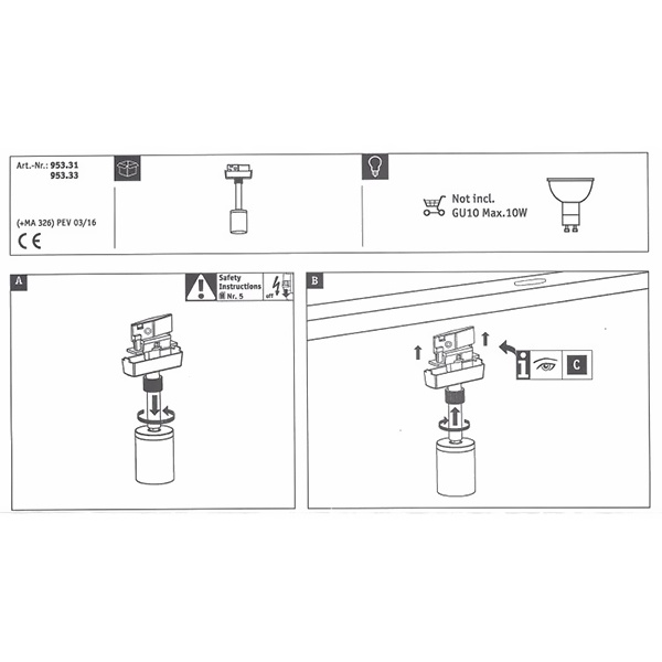 Трековый светильник акцентного освещения Пульман для шинной системы URail, под лампу с цоколем GU10 с максимальной мощностью 10 Ватт 95331
