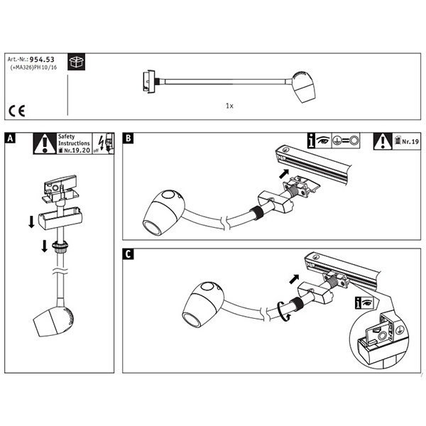 Трековый светодиодный светильник, гибкий, акцентного освещения Пульман для шинной системы URail, мощностью 5,5 Ватт, теплый свет 95453