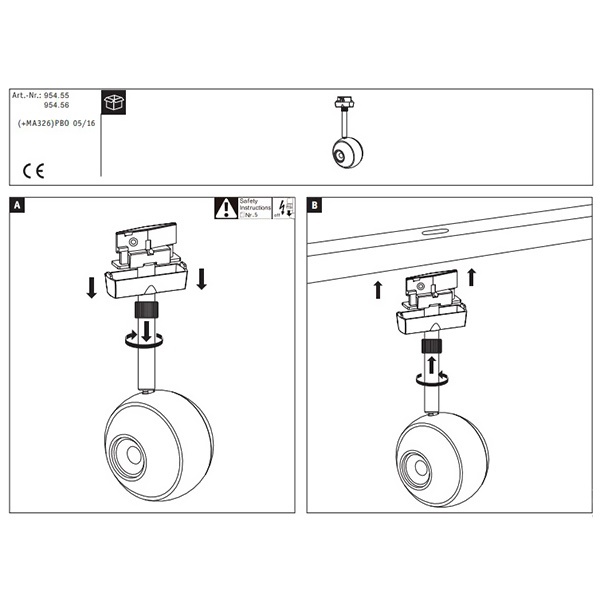 Трековый светодиодный светильник акцентного освещения Пульман для шинной системы URail, мощностью 6 Ватт, теплый свет 95455