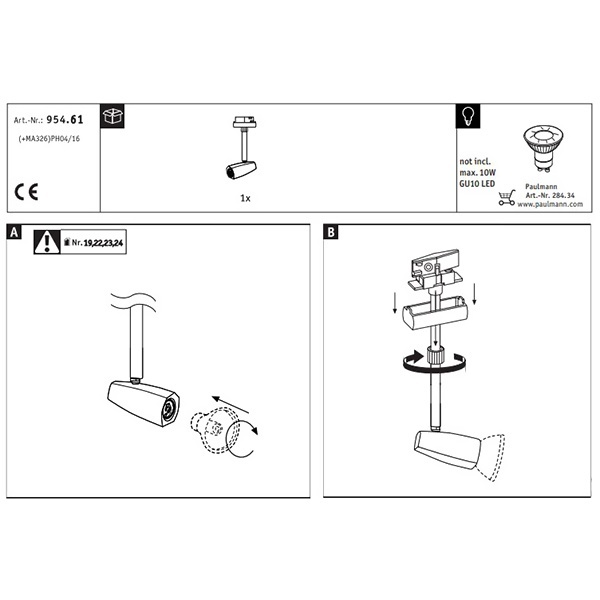 • Светильник Paulmann Barelli max. 10W GU10 для шинопровода URail Хром матовый/Хром