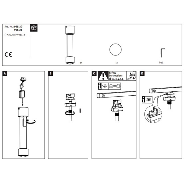 Трековый светодиодный осветительный прибор Pend Aldan для шинной системы URail, мощностью 13 Ватт, теплый свет 95520
