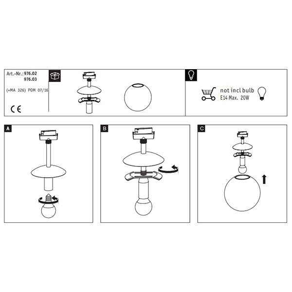 97602 Светильник Paulmann Ceiling Globe Small max. 10W 230V E14 для шинопровода URail хром матовый