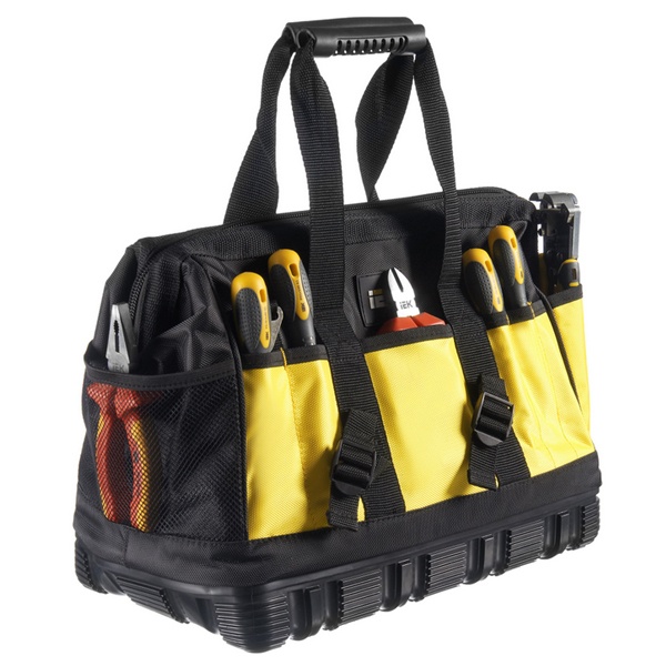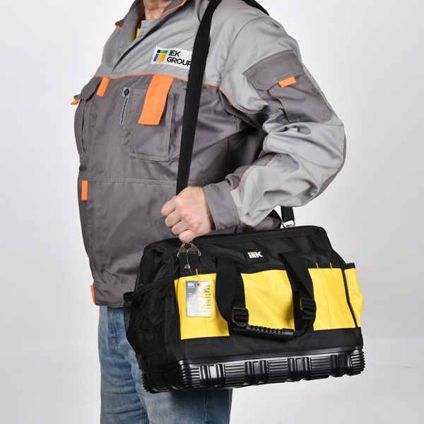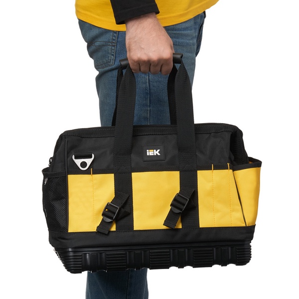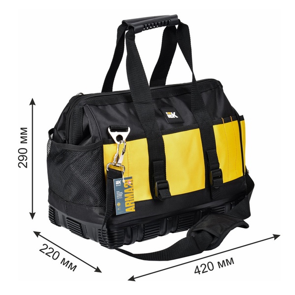 Монтажная сумка с резиновым дном BG-01 разработана для комфортной и надежной перевозки инструментов при выполнении выездных задач. Изделие изготовлено из прочного полиэстера 1680D Oxford с защитной PVC-пропиткой, что обеспечивает стойкость к износу и влаге. Основание сумки усилено прорезиненным материалом с высокими бортиками, эффективно оберегающими содержимое от намокания и загрязнений. Для удобства переноски предусмотрены резиновые ручки и наплечный ремень с анатомической вставкой, снижающей нагрузку при длительном ношении.
