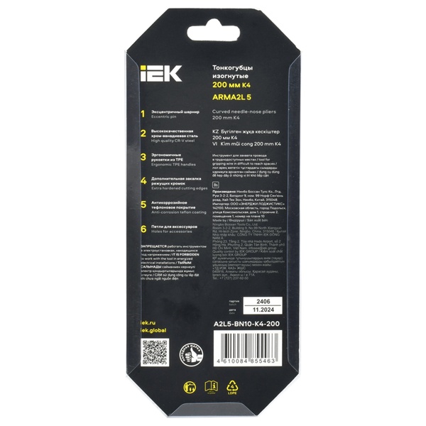 Ручные тонкогубцы 200 мм ИЭК изогнутые с режущими кромками A2L5-BN10-K4-200