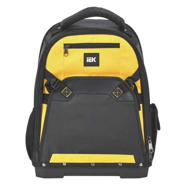 Основное отделение — просторное, с 10 карманами и 6 резиновыми отсеками для фиксации инструмента.Передний отсек оснащён 8 удобными карманами.2 больших боковых кармана для дополнительного оборудования и аксессуаров.Крепление для рулетки на боковой панели — быстрый доступ к измерительному инструменту.Возможность использования дополнительного вкладыша-органайзера IEK BG-08, который помогает навести порядок внутри рюкзака и ускоряет поиск нужного инструмента.