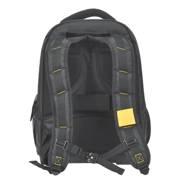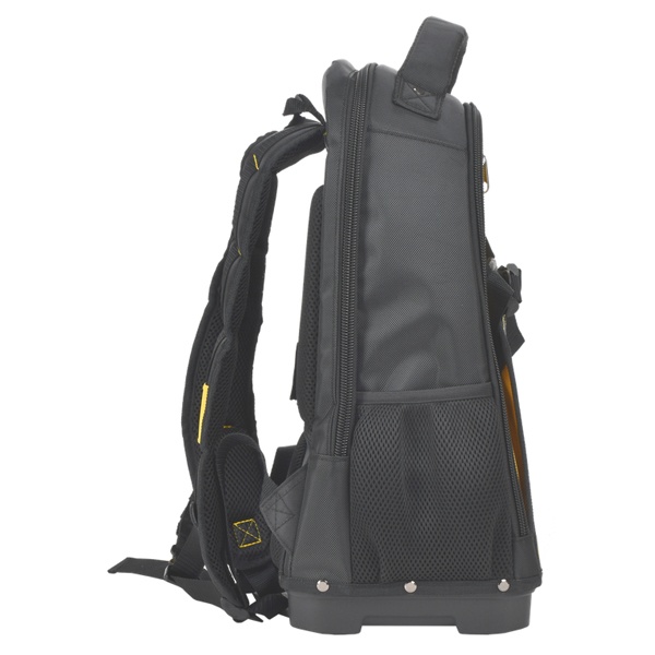 Жёсткое пластиковое дно усиленной конструкции с прорезиненным покрытием и высокими бортиками устойчиво к воздействию влаги, масел и механическим нагрузкам, надёжно защищает содержимое.Анатомическая спинка и широкие лямки с мягкими вставками снижают нагрузку на спину и плечи, обеспечивая максимальный комфорт даже при длительном ношении.Нагрудный ремень надёжно фиксирует рюкзак при движении.Усиленная ручка для переноски с тканевой накладкой и дополнительными заклёпками выдерживает вес до 25 кг, снижая давление на руку.Светоотражающие элементы повышают безопасность при работе в тёмное время суток.Надёжная молния с широкими звеньями устойчива к износу и обеспечивает лёгкий доступ к содержимому.Функциональное внутреннее пространство: