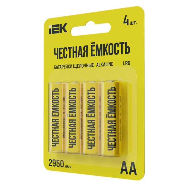 • Батарейка ИЭК AA LR6/AM 3 2950мАч 1,5V алкалиновая (пальчиковая) (упаковка 4шт)