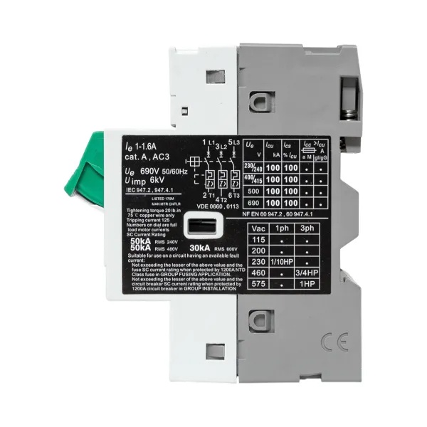 • Номинальная отключающая способность Icu, при 400 В, 50Гц: 100 кА