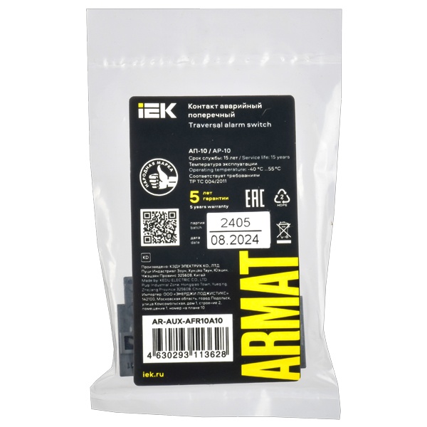 Дополнительный аварийный контакт для автоматического выключателя защиты двигателя серии ARMAT используется для индикации положения механизма взвода выключателя. Переключение контактов происходит исключительно при срабатывании выключателя от сверхтока. Устройство соответствует требованиям ТР ТС 004/2011.