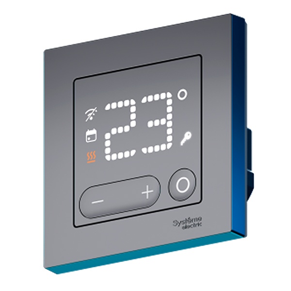 Принадлежит к линейке AtlasDesign Smart и полностью совместим с декоративными рамками AtlasDesign от Systeme Electric, что позволяет органично вписать термостат в любой интерьер. Монтаж выполняется в стандартный подрозетник глубиной от 45 мм — устройство можно установить как отдельно, так и в составе многопостовых рамок.