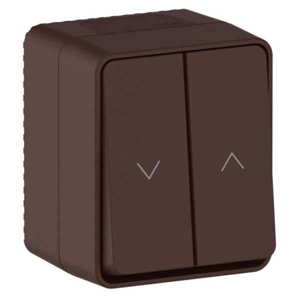Влагозащищенный двухклавишный кнопочный выключатель накладного исполнения коричневого цвета для управления жалюзи, АтласДизайн Profi54. ATN546019