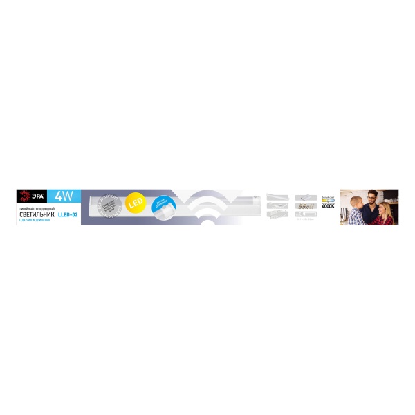 LLED-02-04W-4000-MS-W ЭРА Линейный светодиодный светильник с датчиком дв. 4Вт 4000К L311мм (25/1050)