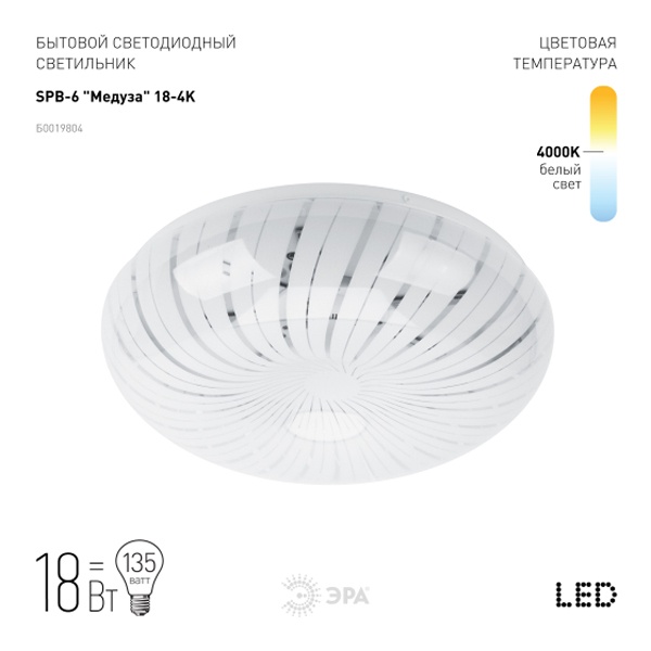 SPB-6 "Медуза" 18-4K (A) Бытовые свет ЭРА Светодиод. св-к 18Вт 4000K 1400Лм 335x98 (10/60)