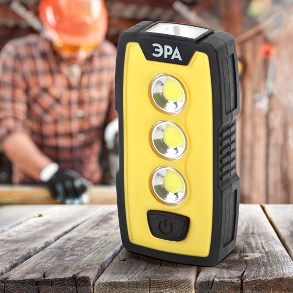 • Фонарь ЭРА Рабочий RB-802 серия Практик 6W COB + 1W LED, батареи 3xAAA, защита IP65, крючок, магнит