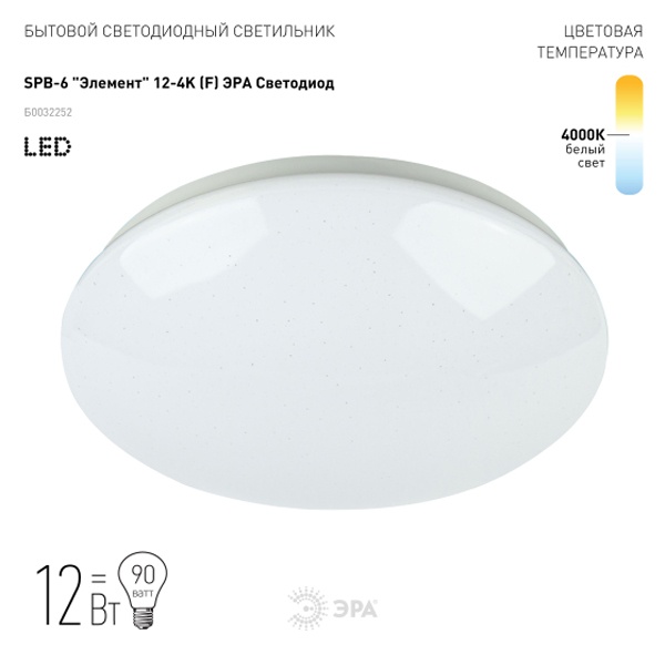 LED Светильник настенно-потолочный ЭРА Классик "Элемент" 12-4K, 12Ватт 4000K 960Лм Б0032252