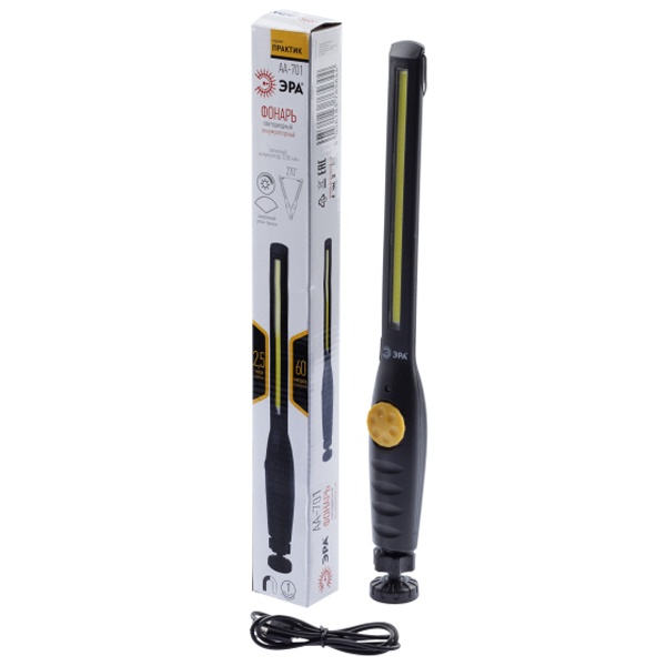 Б0036613 Фонарь ЭРА автомобильный AA-701 серия Практик 7,3W COB 3,2 Li-ion, крюк, магнит, изгиб корпуса 40гр.