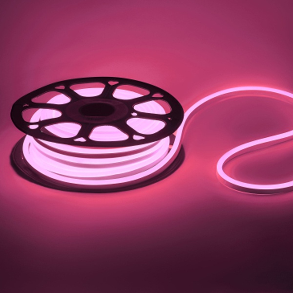 Влагозащищенная неоновая светодиодная лента, мощностью 7Вт/м, 220 В, цвет свечения розовый Б0043078